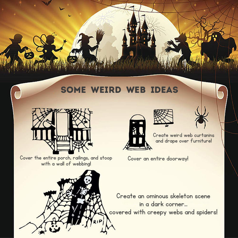 - 650 grams of spider web is enough for you to get through an entire Halloween.