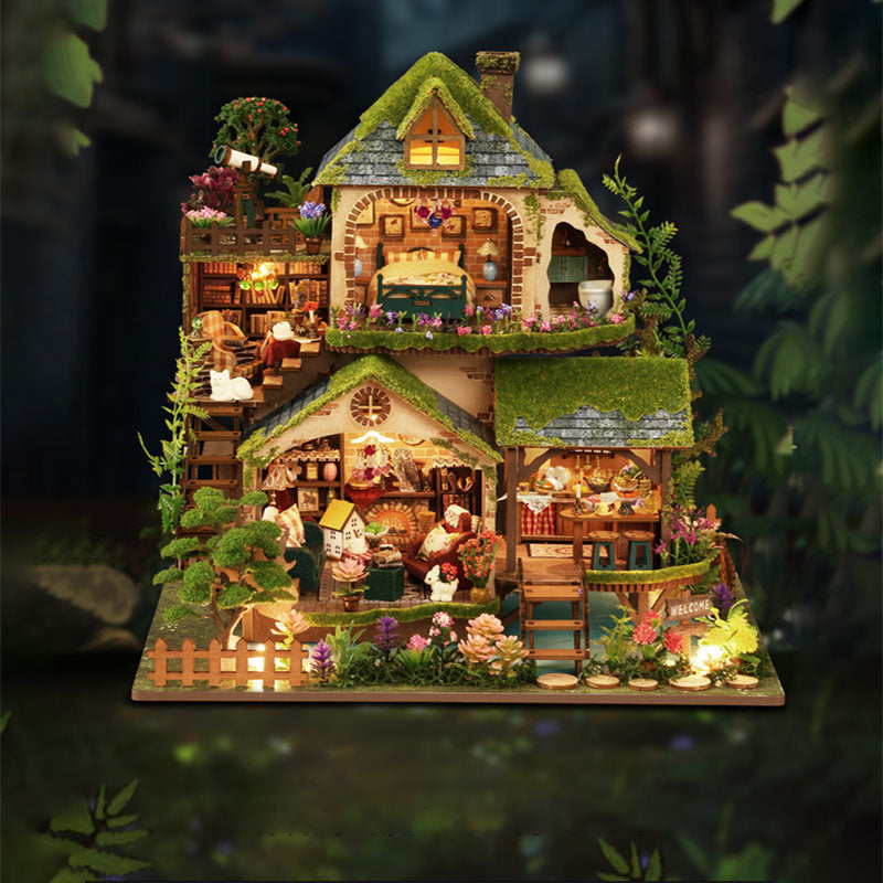 DIY Wooden Puzzle Miniature house Doll house 3D Book Nook Shelf Hand Made Toy