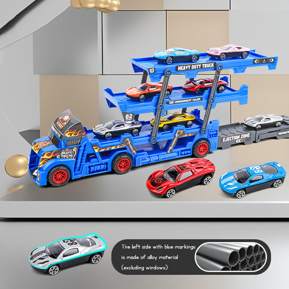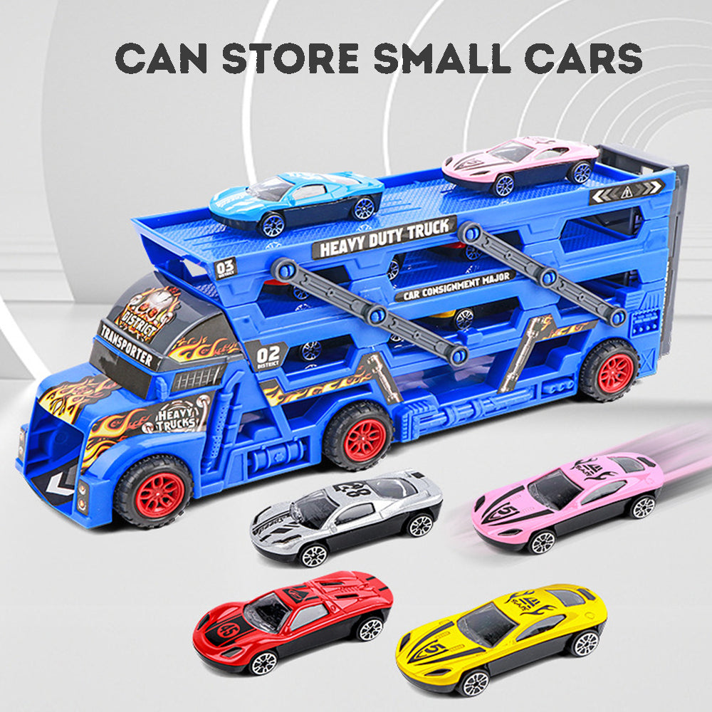 Kid's toy cargo truck unfolds folds for storage features launching function for small cars ideal birthday gift for boys