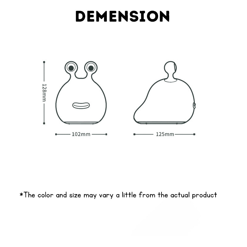 - The slug night light consists of one night light, one USB charging cable, and one instruction manual