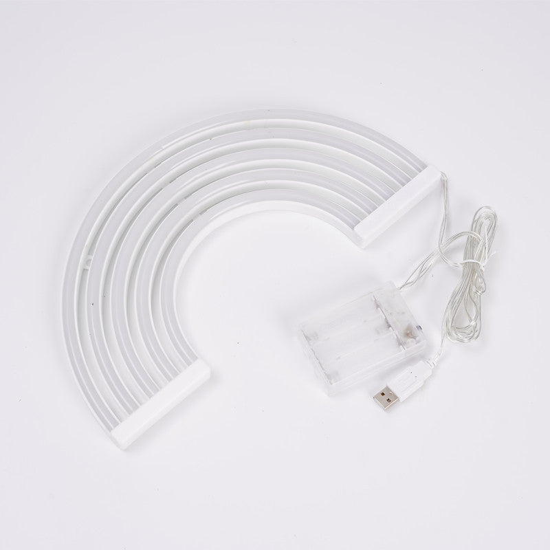 LED Rainbow Neon Light Wall Hanging – Battery & USB Dual-Use Night Light, Creative Christmas Holiday Decoration for Home & Net Celebrity Room Arrangement