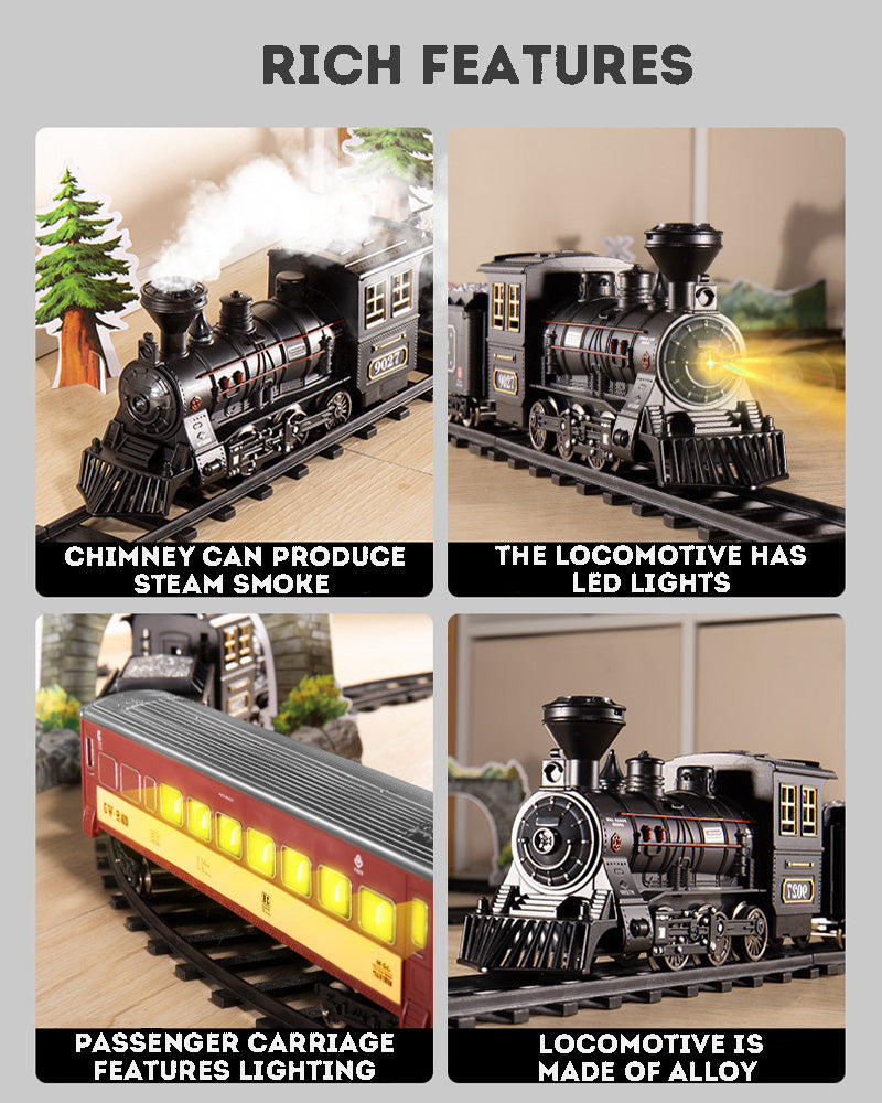 Children’s Remote Control Steam Train with Extra-Long Track – Electric Toy Train & Creative Building Kit
