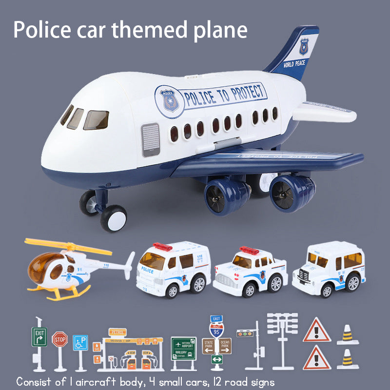 Transport Cargo Airplane Toy Playset with Music, Lights, and Mini Vehicle Cars