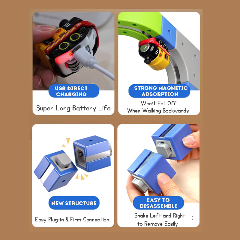 - The mini train and high-speed train may run slowly due to low battery. Please recharge them promptly to ensure smooth operation on the track, and turn off the trains when not in use.